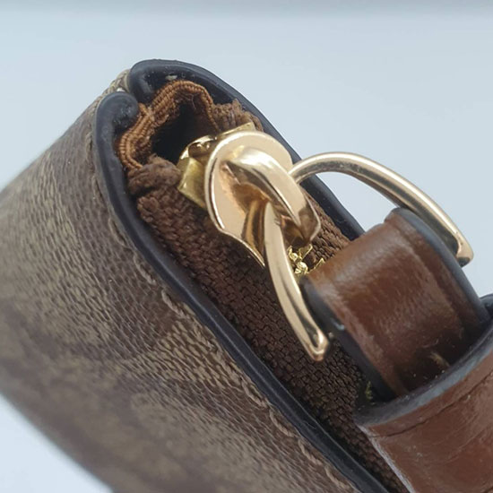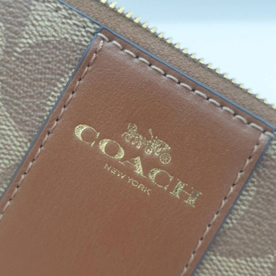 กระเป๋าคล้องมือ 1 zip S สีน้ำตาลลายซี คาดน้ำตาล CORNER ZIP WRISTLET IN SIGNATURE CANVAS (COACH #F58035) KHAKI/SADDLE 2