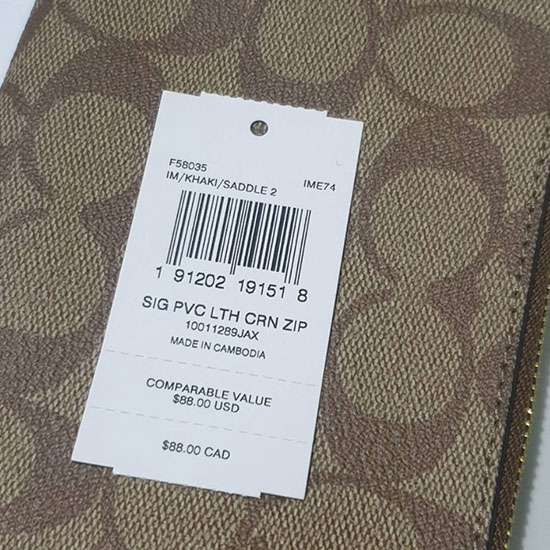 กระเป๋า Coach F58035 Corner Zip Wristlet In Signature Canvas Saddle